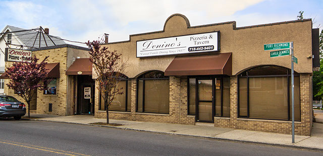 We originally opened in 1937 as a full tavern on Richmond Avenue, Staten Island until Carlo Denino introduced Pizza in 1951. Since then, Denino’s Pizzeria and Tavern has been renowned for our pizza pie and Italian dinner platters, which we always prepare fresh daily. We use our family’s recipes for Chicken Parmigiana, Meatballs and Sausage and over the years we’ve added our own version of tavern favorites like Wings, Scungilli and Hero Sandwiches.
